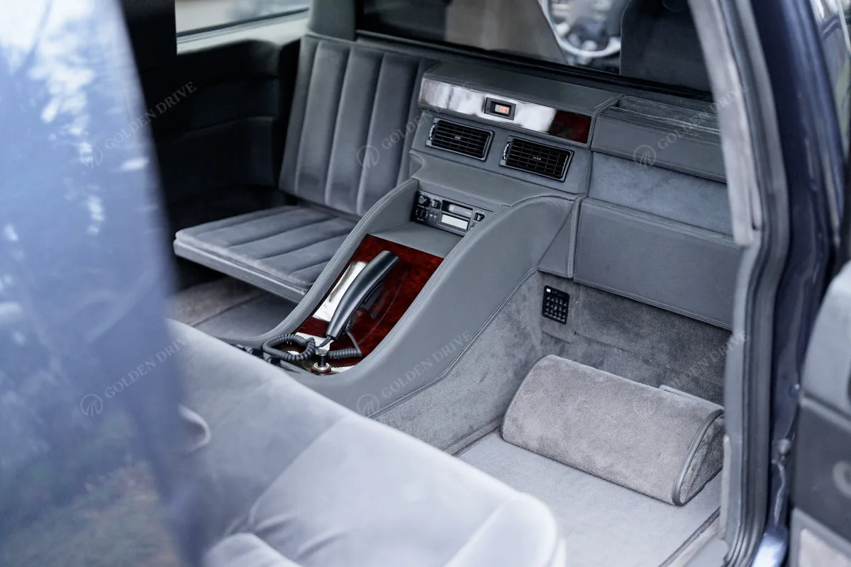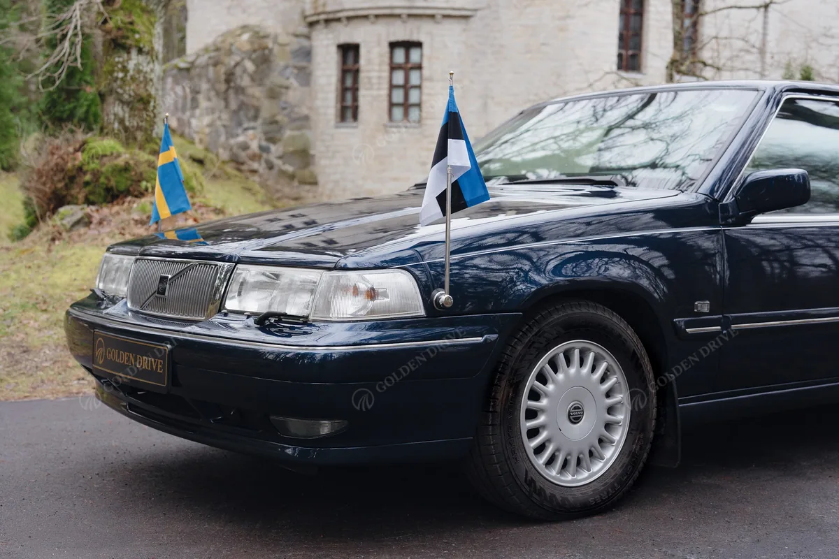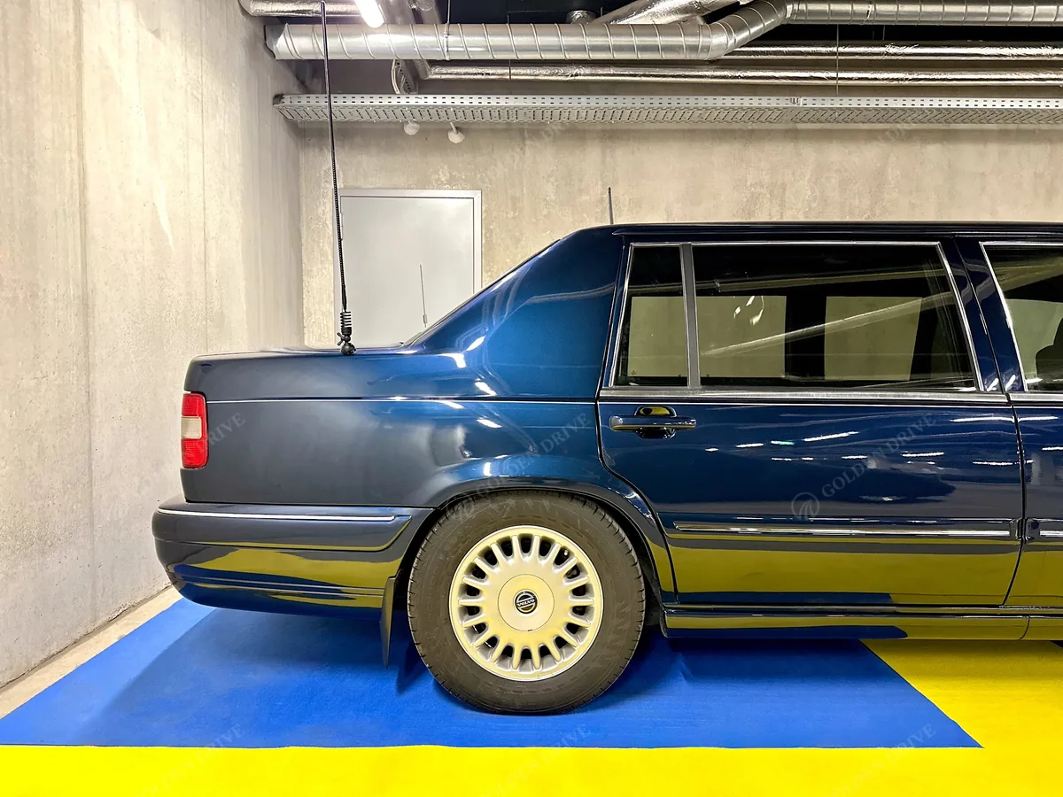 This armored Volvo 960 Royal limousine was built in 1996 under a special government order of the Kingdom of Sweden. The vehicle meets the B6 protection level, providing defense against automatic-weapon fire and explosive impacts. It is a unique executive example used by the Swedish Security Service to escort foreign heads of state, emperors, and members of royal families during 1997–2005. An original vehicle with a documented service history and low mileage of 31,090 km.
